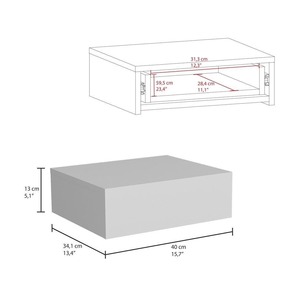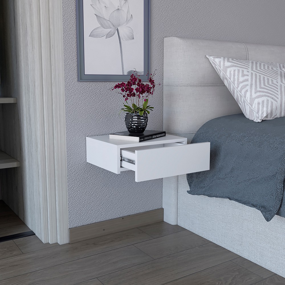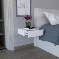 Nochero flotante de fácil instalación y armado, un cajón, diseño minimalista, superficie para ubicar objetos.